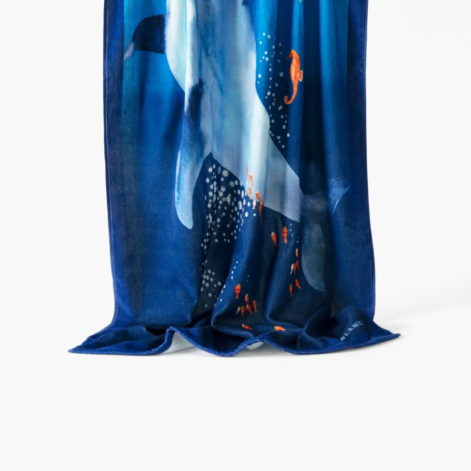 Explorez la magie des fonds marins avec le drap de plage Océanos, reflétant l’ADN de Carré Blanc. Avec sa magnifique baleine, c’est le cadeau idéal pour les enfants.