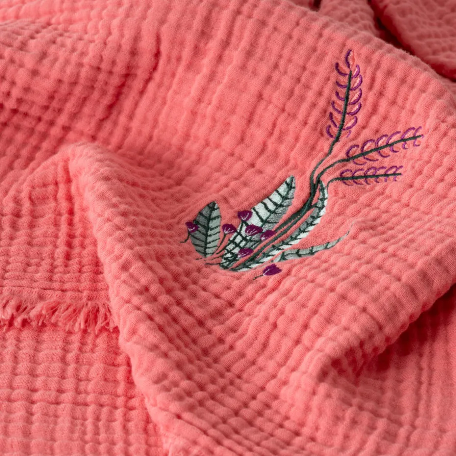Plongez dans l’exotisme tout en douceur avec la couverture enfant Aruba. Agrémentée d’une délicate broderie florale et de finitions en franges, elle enveloppe les petits d’une tendresse exquise.
