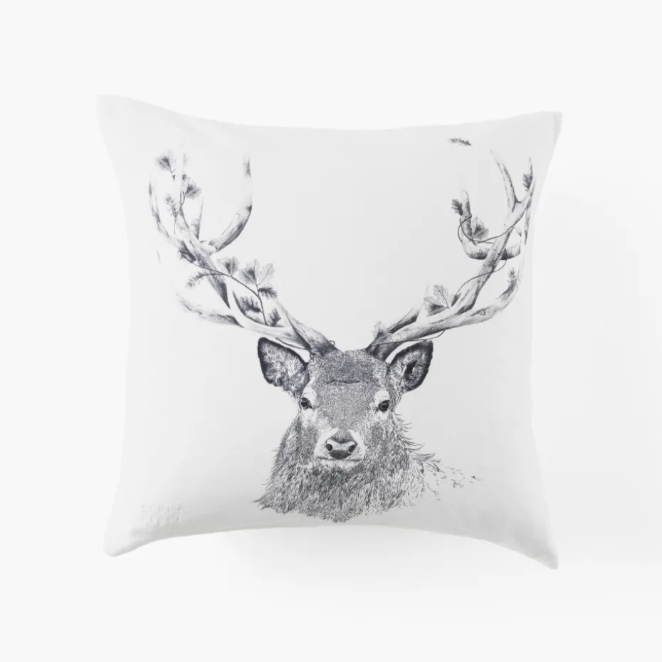 La housse de coussin Elaphe en percale de coton est une invitation à la magie de Noël avec son portrait de renne. Laissez-vous séduire par son charme traditionnel et authentique.