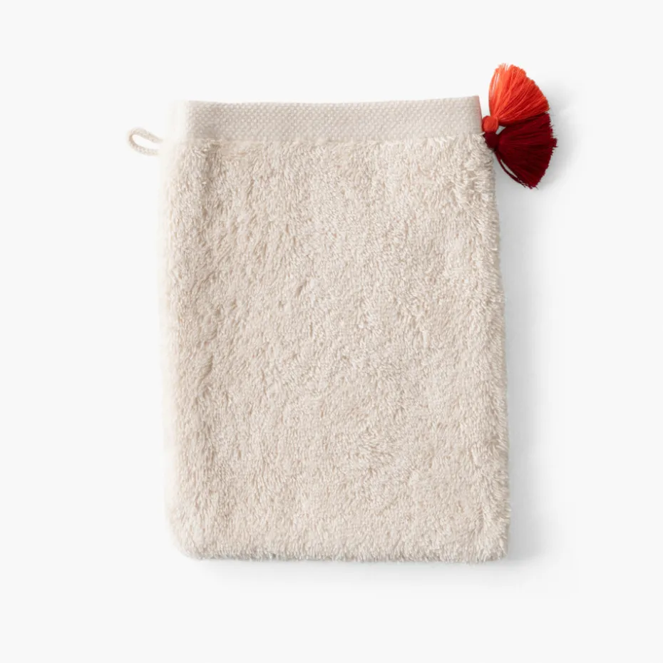 Le gant Eclats, conçu en bouclette unie 100% coton, offre douceur et confort après le bain. Disponible en deux coloris : naturel et bleu pétrole.
