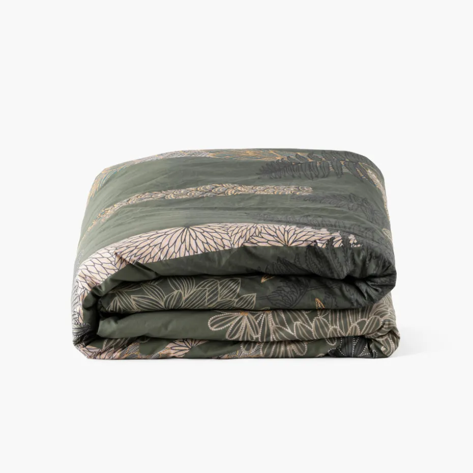 Laissez-vous emporter par le paysage enchanteur de la housse de couette Silvalys. Sa fresque onirique mêle esthétique raffinée et Art déco pour une fusion magique entre l’art et la nature.
