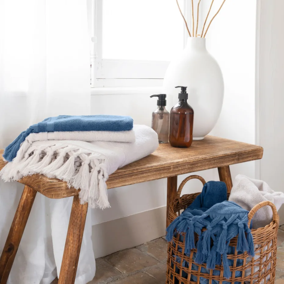Laissez-vous séduire par la collection Madeleine et ses détails inspirés de l’artisanat : des finitions en nœud façon macramé, le tout sublimé par des coloris nostalgiques craie et indigo. Fabriquée en bouclette de coton, cette mini serviette vous offre un confort et une capacité d’absorption optimale. Adoptez le style maison de campagne avec cette parure de bain à l’esprit résolument authentique.