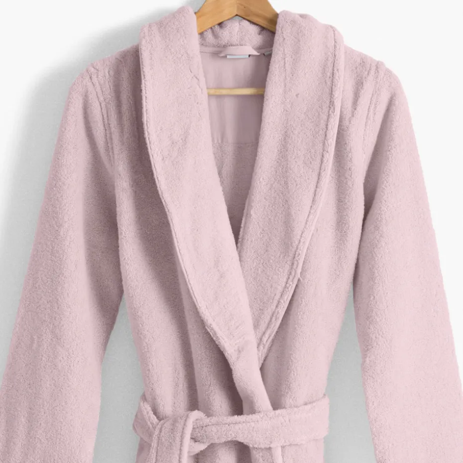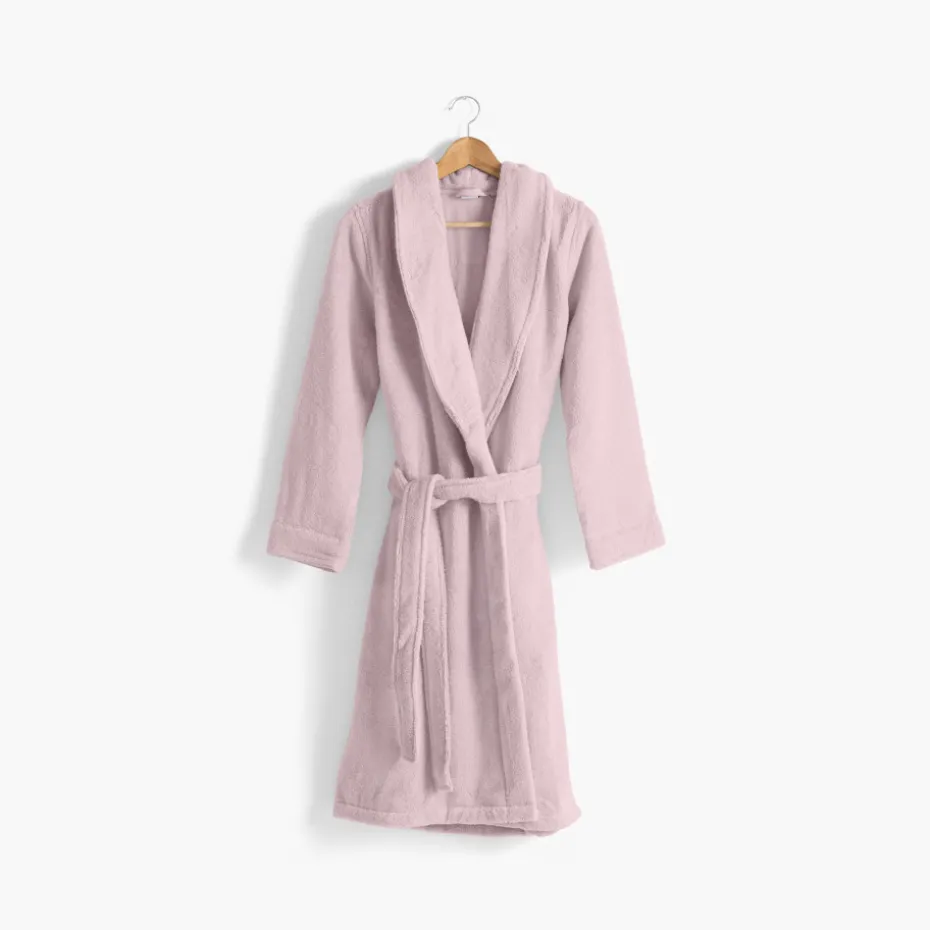 Réalisée en « coton moelleux » d’un poids exceptionnel de 380g/m2, le peignoir Ella allie confort et douceur extrêmes à un pouvoir d’absorption très élevé, avec la garantie d’une stabilité dans le temps. Ses coloris actuels : blanc, gris, lagon et corail ainsi que ses finitions sobres et délicates font d’Ella une gamme intemporelle de peignoirs indispensables à votre bien-être.