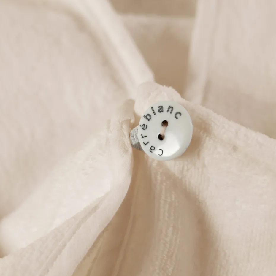 Cette serviette pour les cheveux se décline en coloris naturel, blanc et eucalyptus.