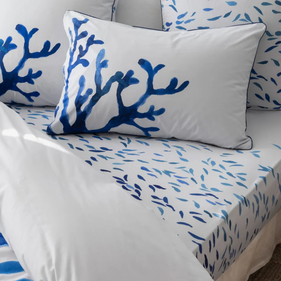Ce drap housse aux motifs marins peut aussi s'associer à notre gamme de linge de lit uni.