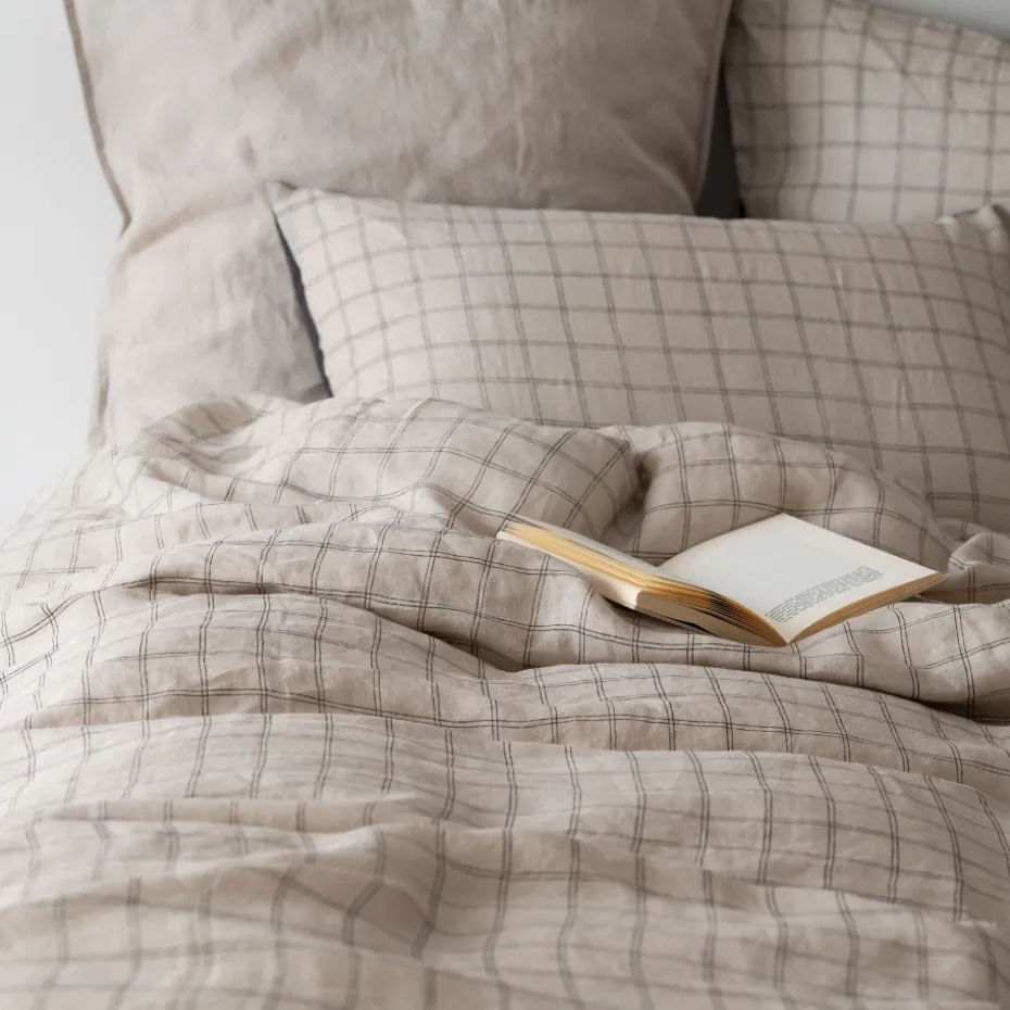 Succombez à l’esprit graphique de notre collection Songe, son coloris charbon et ses motifs carreaux. Le toucher unique du lin associé à un imprimé tendance pour une chambre dans l’air du temps.
