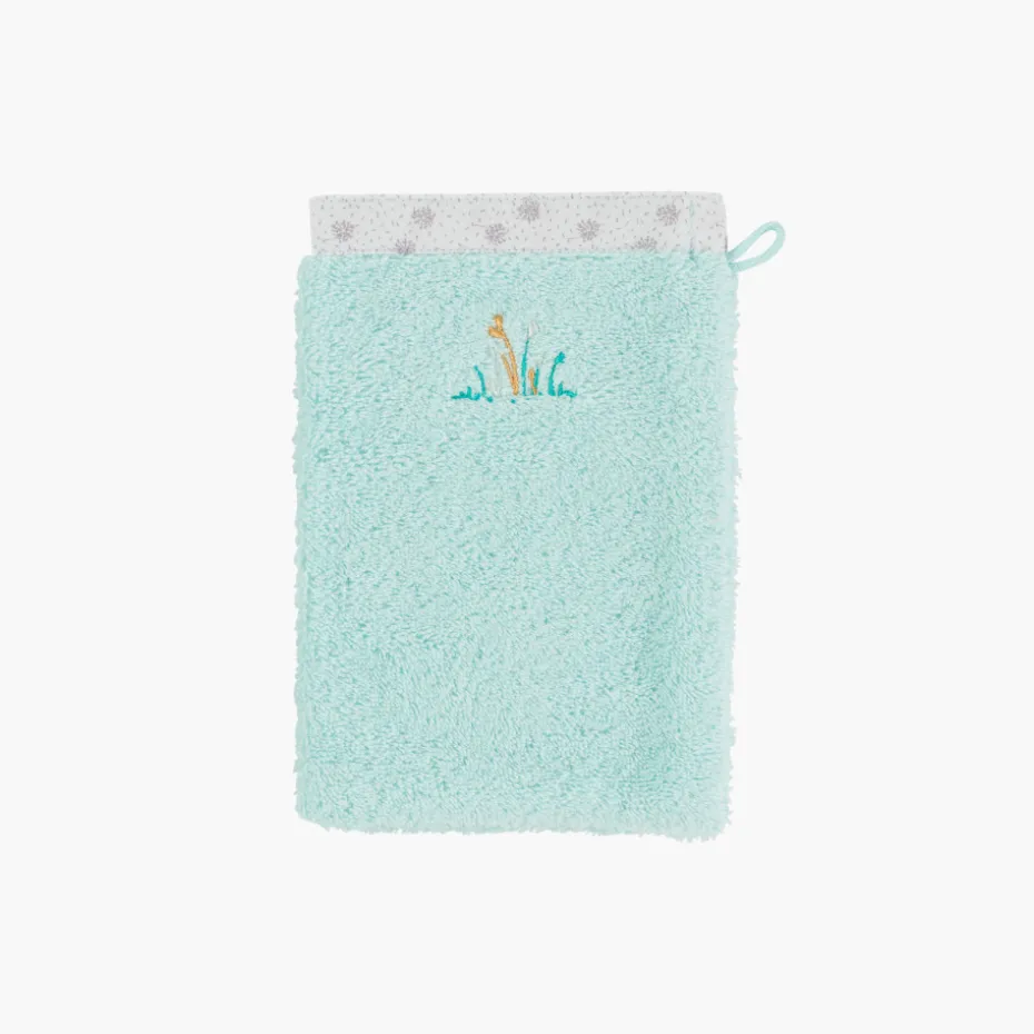 Le gant de toilette Devine prend soin des tout-petits à la sortie du bain grâce à sa composition en coton biologique certifié GOTS. De coloris céladon, cet accessoire de toilette revêt une adorable broderie et s’accompagne d’un micro-motif champêtre imprimé sur le bord. Découvrez les autres produits de la collection Devine pour composer un joli coffret de naissance.