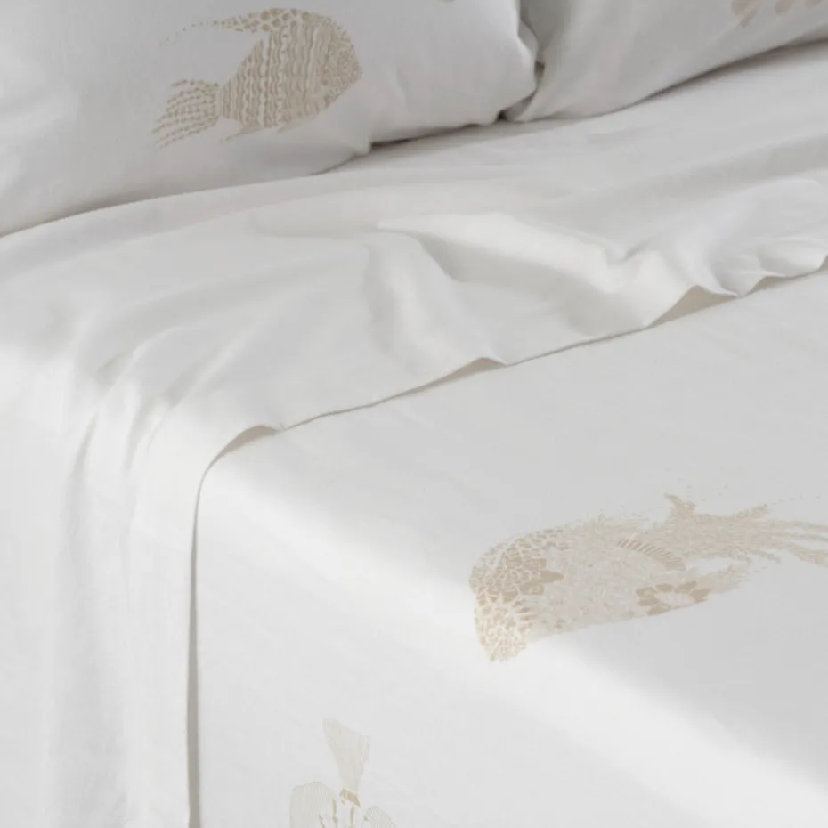 Laissez-vous emporter dans l’univers marin avec le drap de lit Amorgos, délicatement orné de jolis poissons. Une ambiance océanique captivante pour des nuits bercées par la douceur.