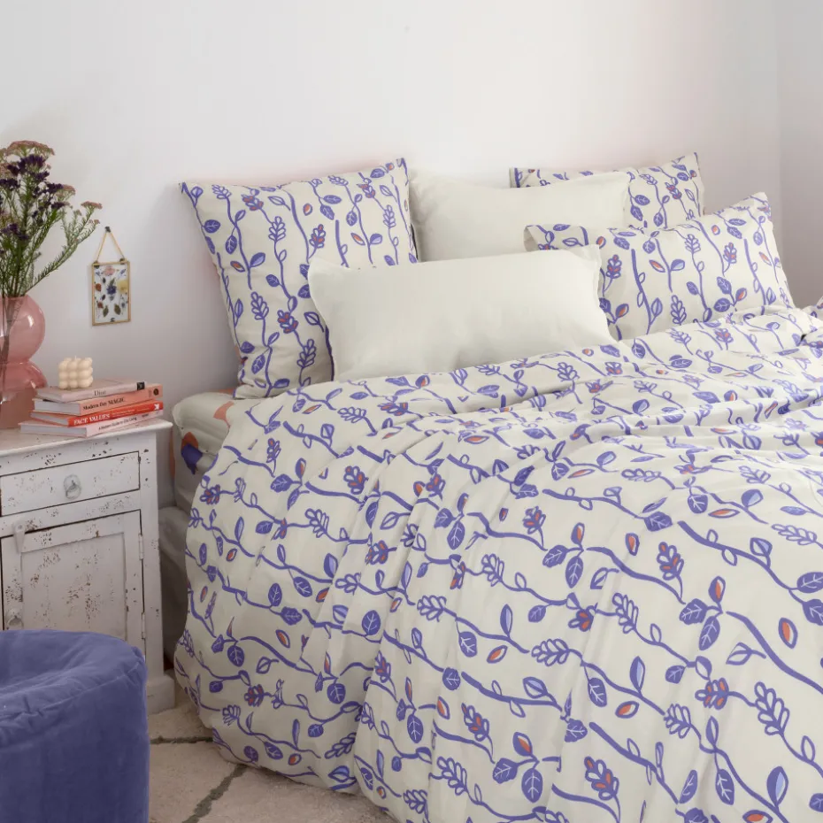 Les adeptes de la décoration rétro vont adorer la housse de couette Twiggypop ! Inspirée par le célèbre mannequin Twiggy, cette collection revisite le style sixties avec un double décor aux allures vintage. D’un côté, des maxi fleurs stylisées. De l’autre, un imprimé floral plus discret pour varier les plaisirs. Laissez-vous séduire par ce linge de maison aux couleurs pastel douces.