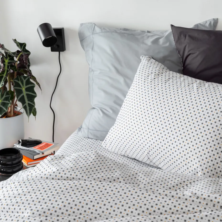 Succombez à l’esprit graphique de notre collection Neo et son coloris anthracite géométrique. Le confort de la percale de coton associé à de petits imprimés pour une chambre tendance.