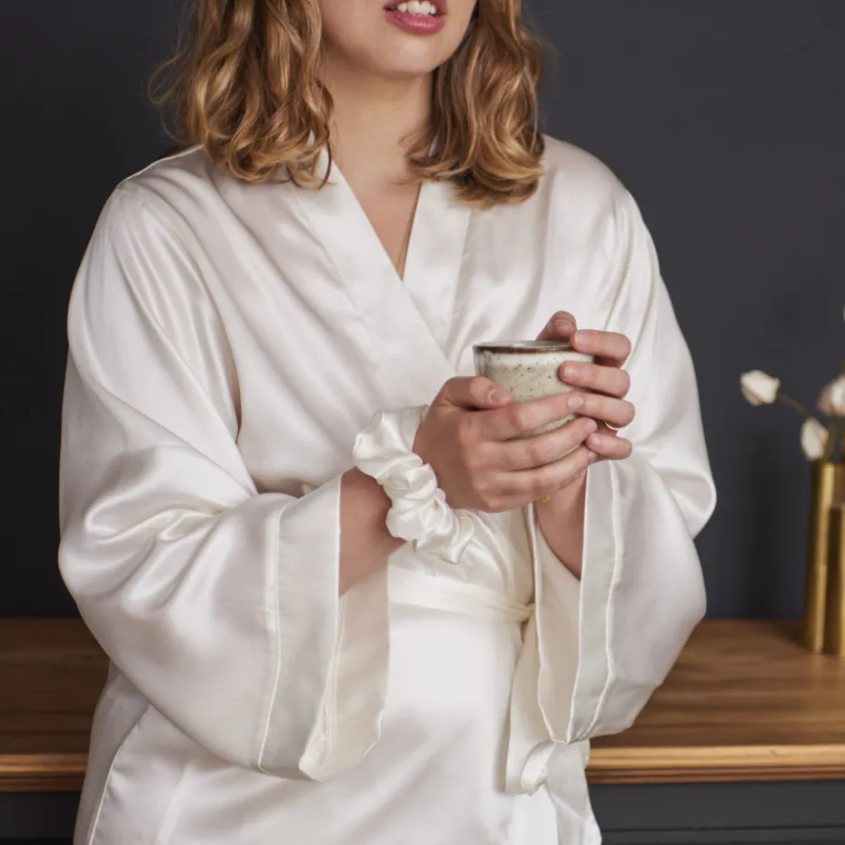 Le kimono Beauté est confectionné en soie de mûrier de 19 mommes, offrant une légèreté exceptionnelle au quotidien. Ce vêtement allie douceur et éclat pour votre peau. Optez pour la coupe courte pour un confort optimal.