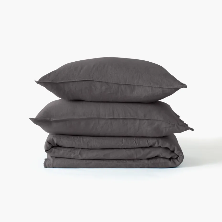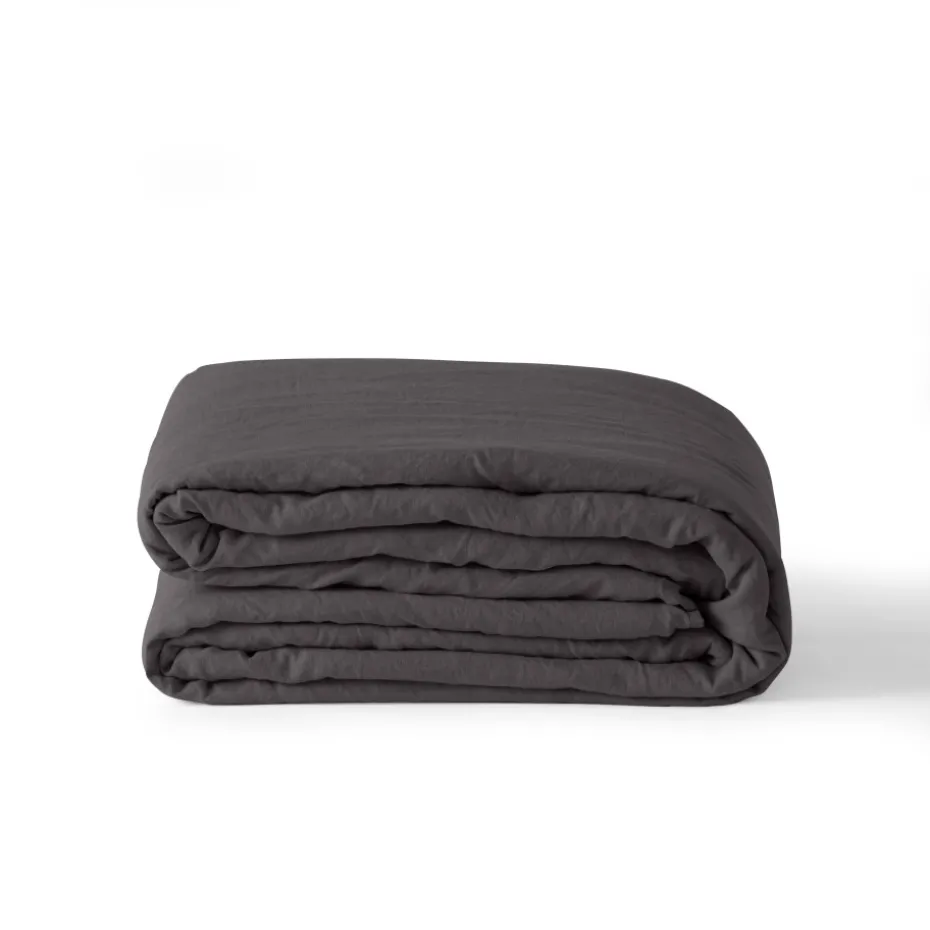 Une housse de couette unie en lin et coton lavé pour un effet respirant et thermorégulateur.