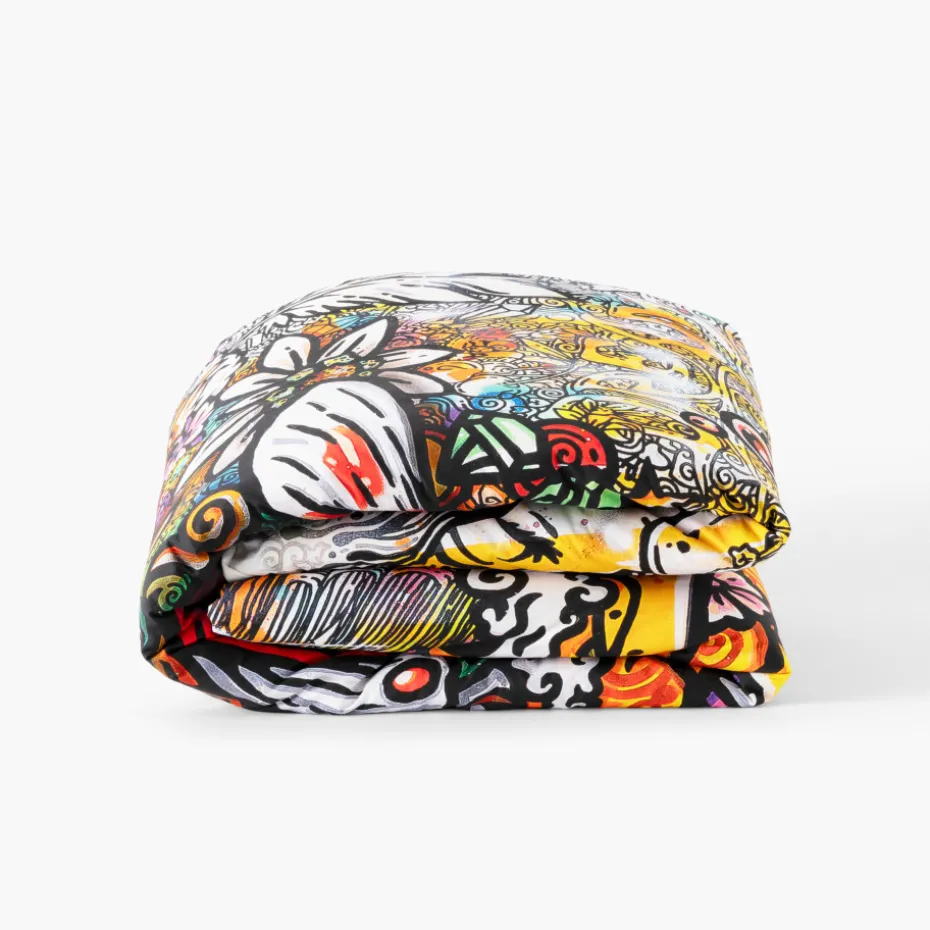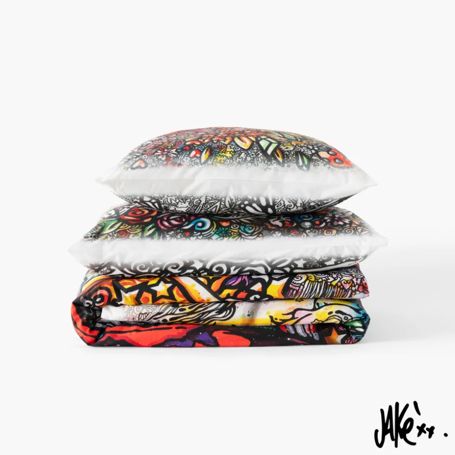 Découvrez la nouvelle collaboration artistique avec l’artiste Jakè à travers la housse de couette Jakè24. Les motifs de cette housse de couette ont été dessinés et créés pour offrir une expérience visuelle unique et immersive, quel que soit l’angle de vue.