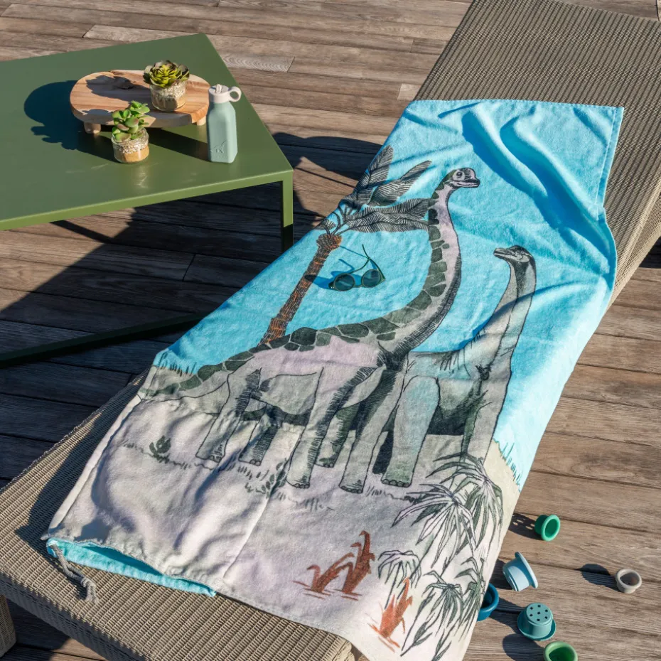 Le dessin plus vrai que nature de la serviette de plage Dinotopi invite les enfants à la découverte du monde préhistorique. Ses motifs intemporels et ludiques seront parfaits pour accompagner les petits tout l’été à la mer ou à la piscine. Pratique, ce drap de plage en velours de coton se transforme en sac à dos pour le transporter facilement. Une parfaite idée cadeau pour les enfants !