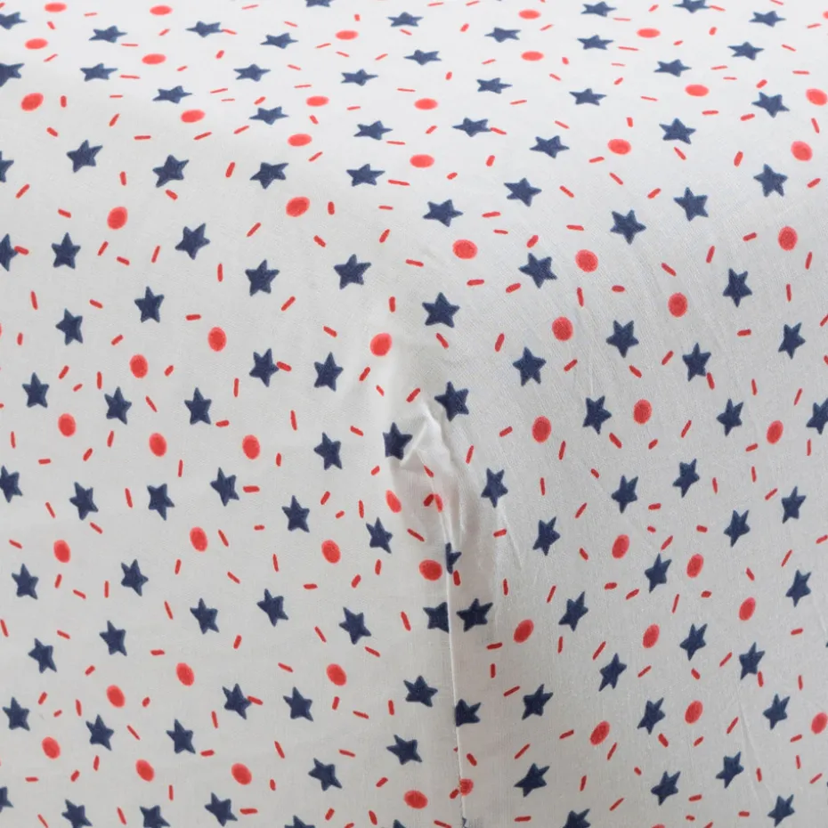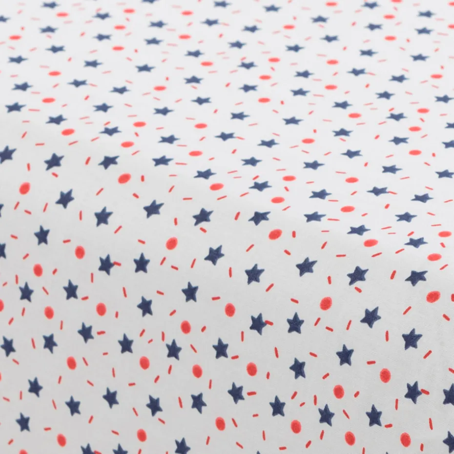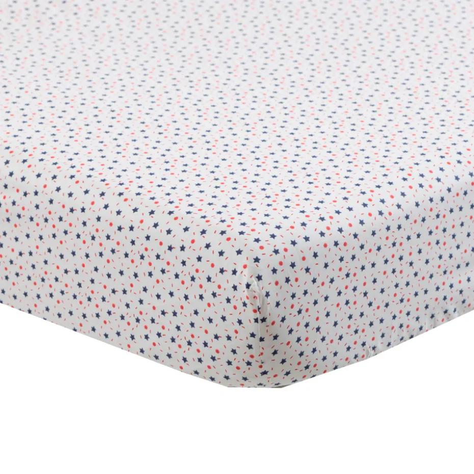 Craquez pour la collection Ptitchic et son nouveau concept proche de la personnalisation. Fabriqué en coton biologique, ce drap housse revêt un joli imprimé étoilé aux coloris bleu blanc rouge dans la tendance frenchy. Les enfants prendront plaisir à matcher ce drap housse avec les autres éléments de la parure de lit : housse de couette et taies d’oreillers aux motifs de chat et renard.