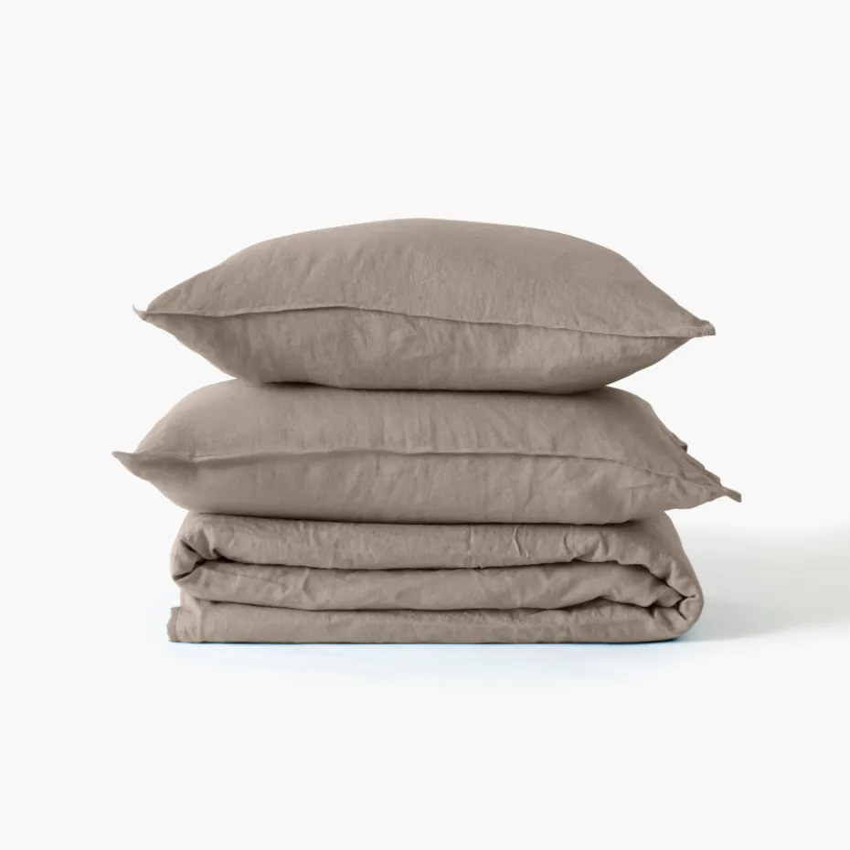 Une housse de couette unie en lin et coton lavé pour un effet respirant et thermorégulateur.