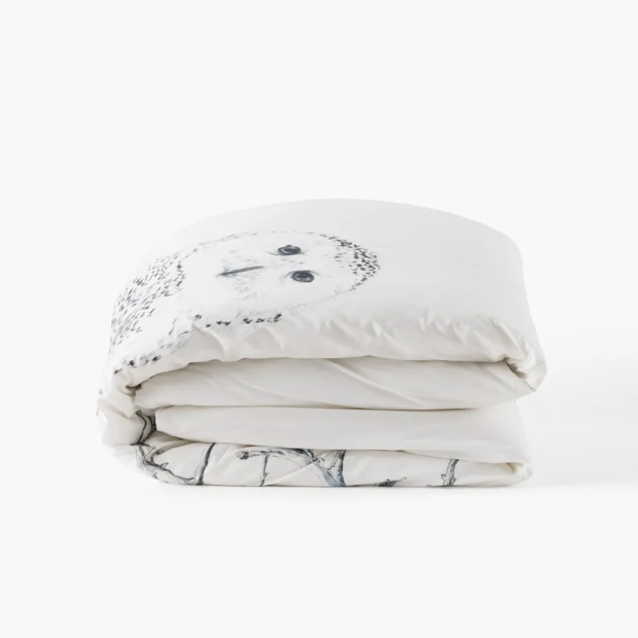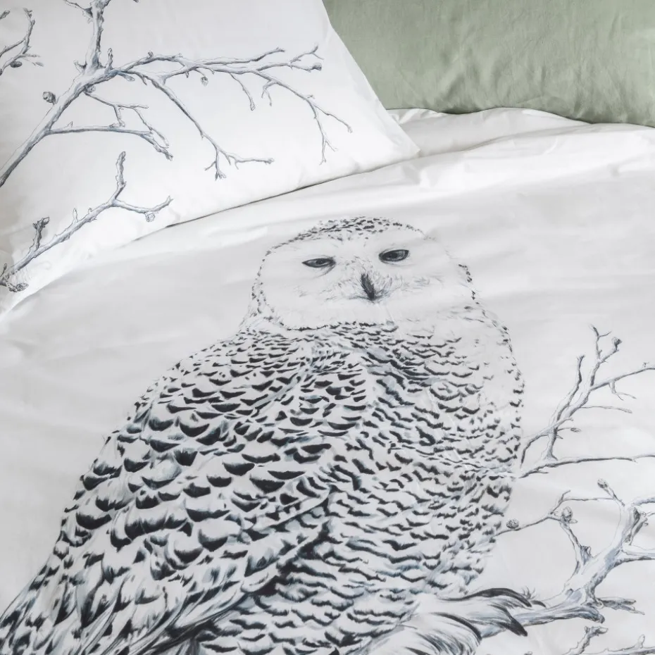 La housse de couette Harfang incarne l’un des thèmes animaliers de Carré Blanc. Son motif crayonné et son ambiance graphique vous plongent dans un blanc pur, évoquant un hiver givré.