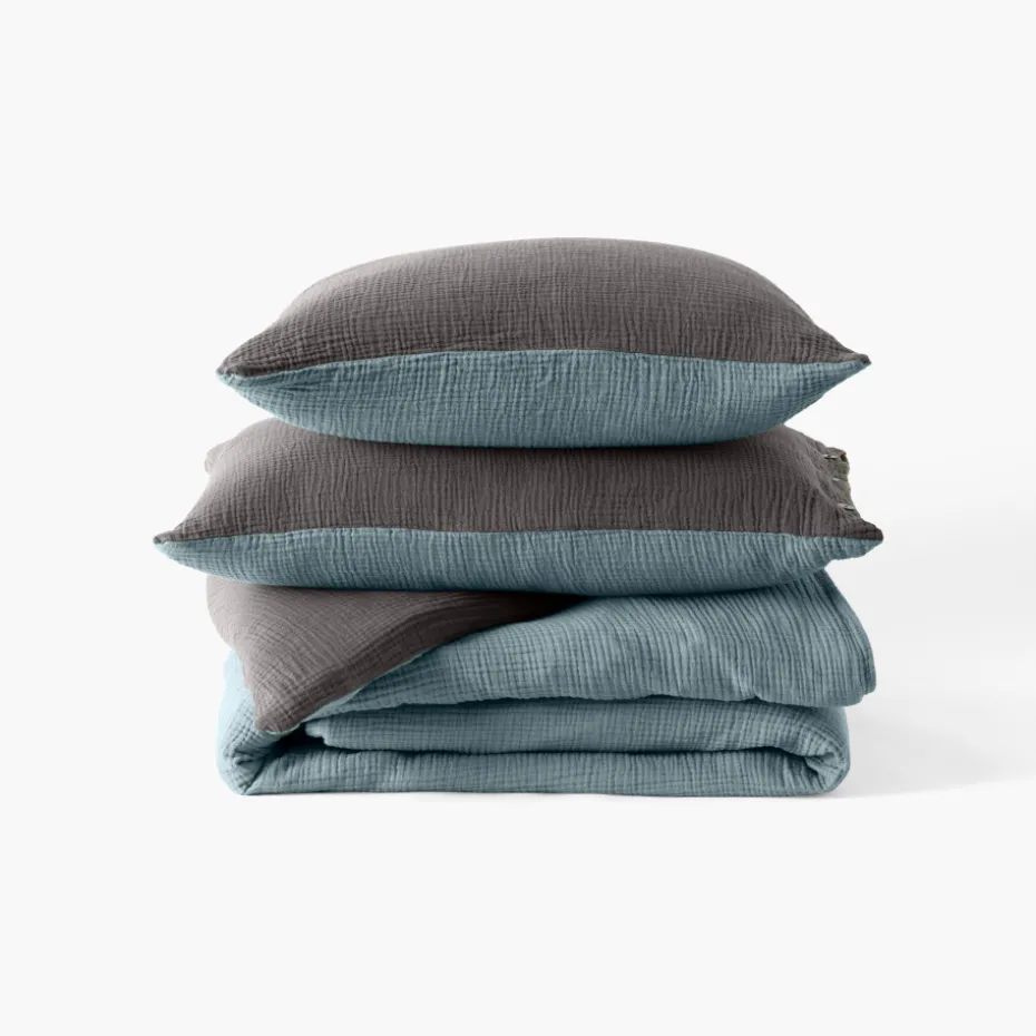 Innovation en gaze de coton, doublement réversible et disponible en 4 coloris.