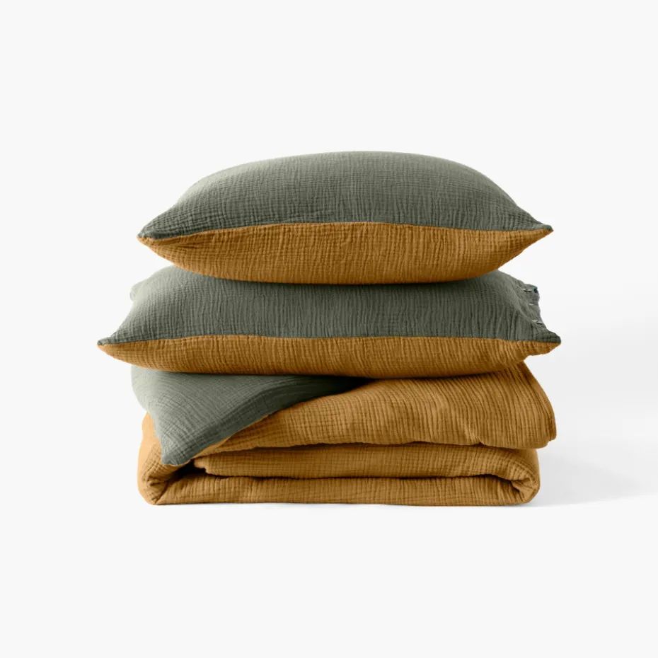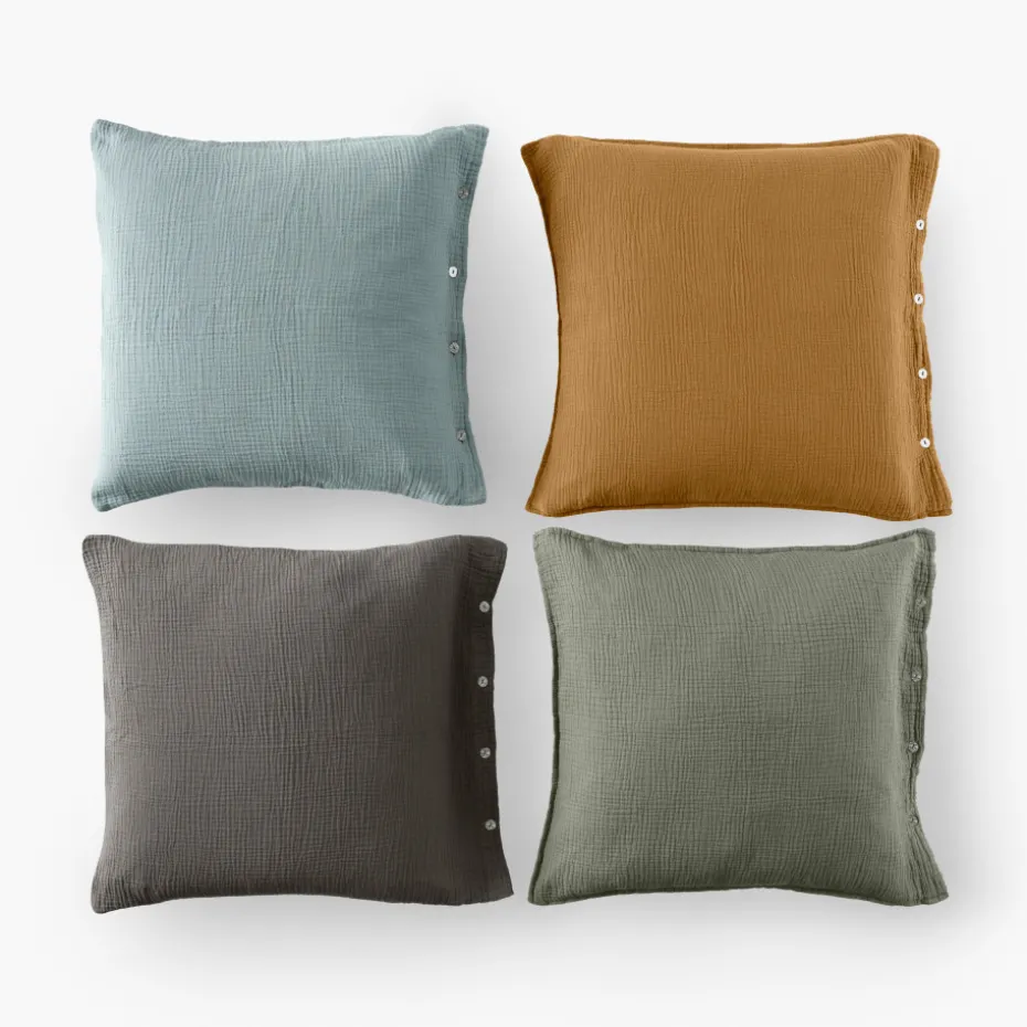 Optez pour l’innovation avec la taie d’oreiller Infini en triple gaze de coton unie, doublement réversible. Découvrez ses quatre coloris : kaki et absinthe, ainsi que céladon et écorce.