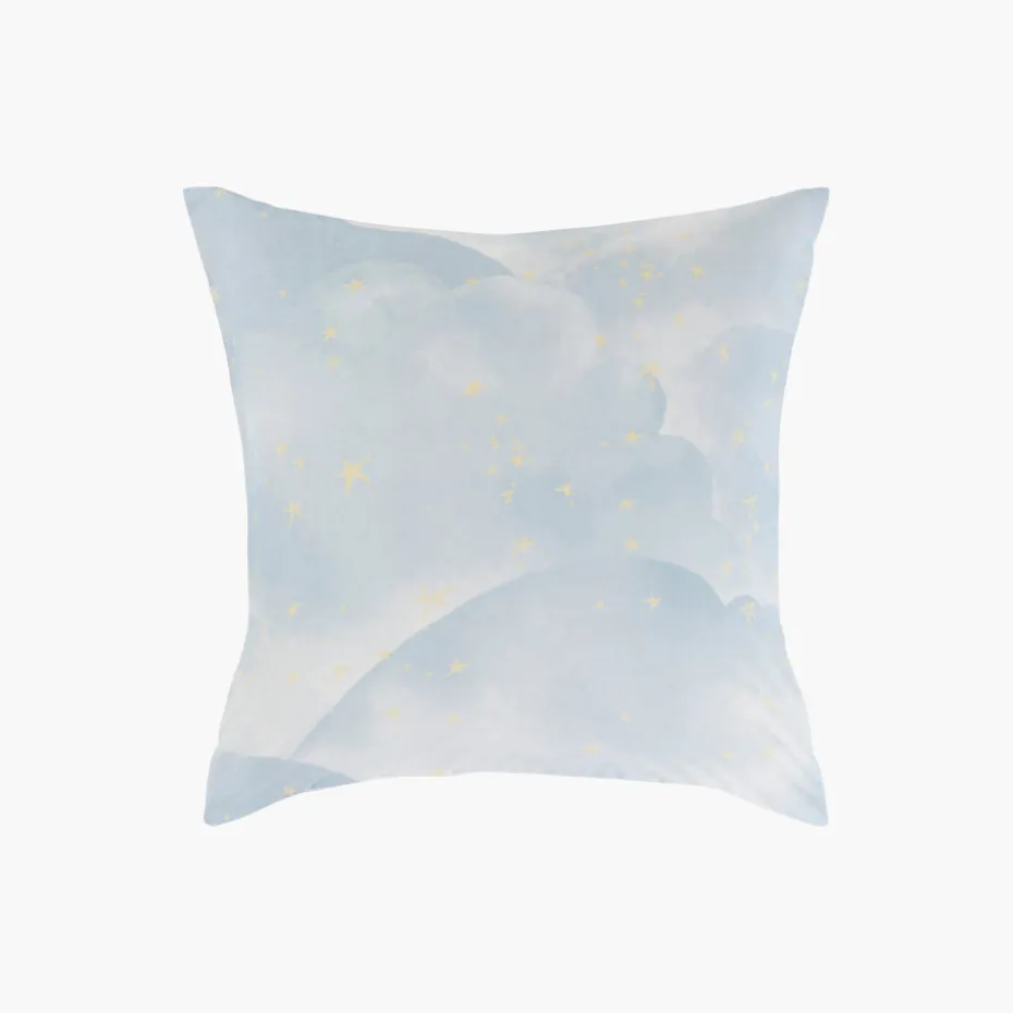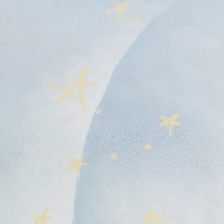 Cette taie d'oreiller enfant revêt des motifs de nuages étoilés pour un côté apaisant.