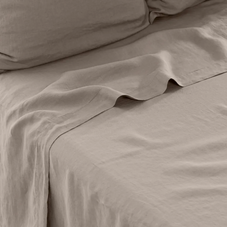Le drap de lit uni Songe est en pur lin lavé des Flandres, 165 g/m². D’un naturel absorbant et aéré, le lin a pour atout de réguler le corps.
