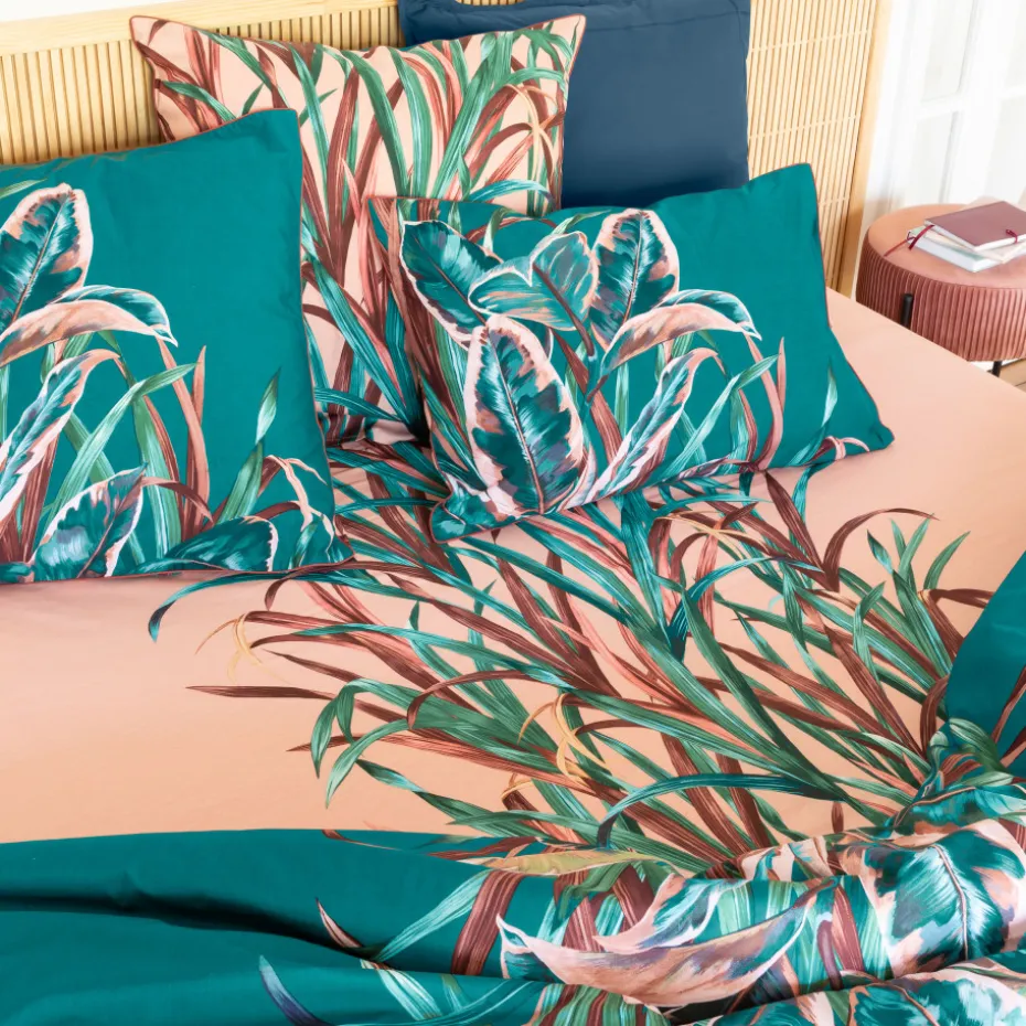 Faites vibrer votre décoration avec le drap housse Calathéa et son incroyable décor végétal. Inspiré de la flore sud-américaine, ce linge de lit exotique et chic dépeint un feuillage haute couture très ornemental, naturellement riche en contrastes de couleurs et en relief pour un effet 3D puissant. Laissez-vous bercer par cette ambiance venue d’ailleurs, la promesse de nuits teintées d’exotisme.