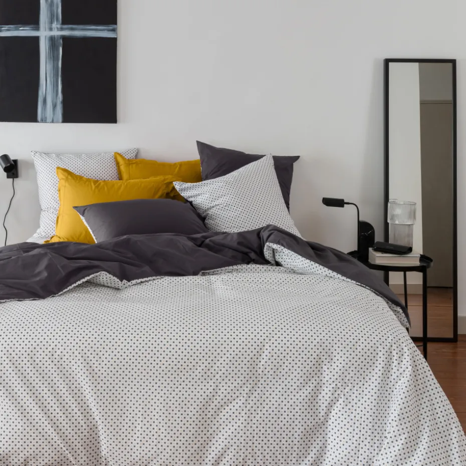 Succombez à l’esprit graphique de notre collection Neo et son coloris anthracite géométrique. Le confort de la percale de coton associé à de petits imprimés pour une chambre tendance.