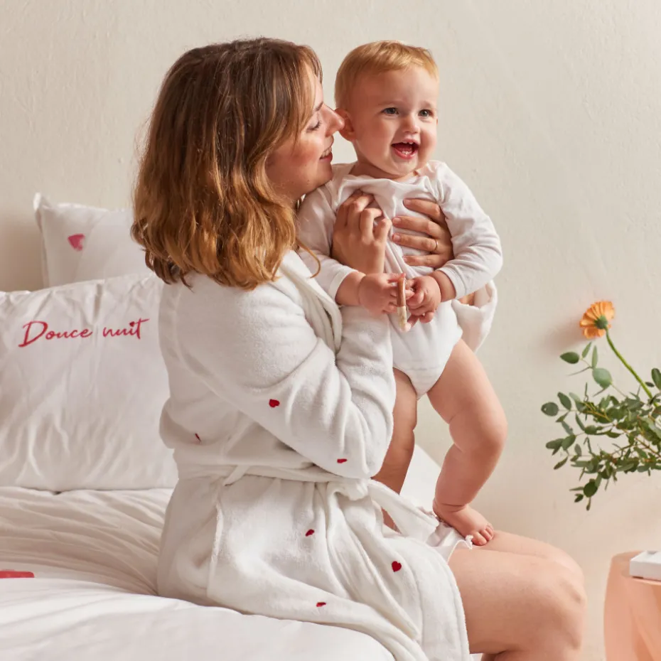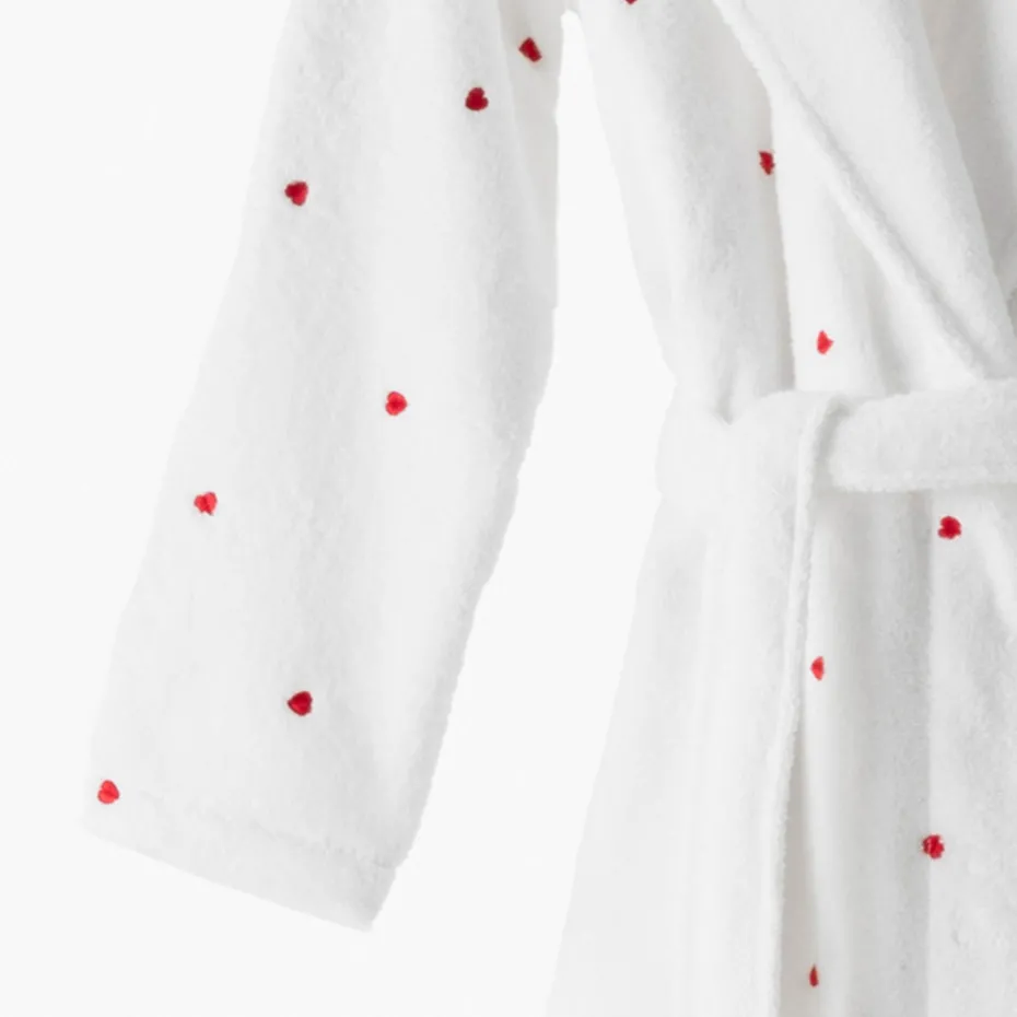 Le peignoir de bain Adore arbore une jolie broderie cœur. Idéal pour une mère et sa fille.