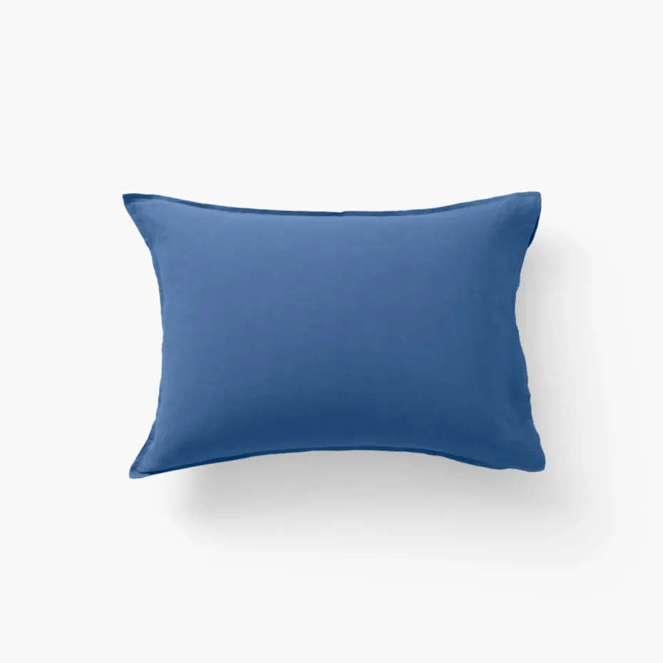 La taie d’oreiller Songe lin/coton a la particularité d’être bi-matière. Elle dispose d’une face en lin lavé des Flandres 165 g/m² très appréciée pour son aspect froissé et son pouvoir thermorégulateur, et d’une face en coton lavé 57 fils/cm² très aimée pour sa douceur au contact de la peau. Laissez-vous séduire par son coloris bleu de chine tendance.