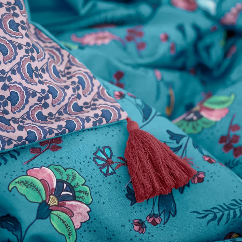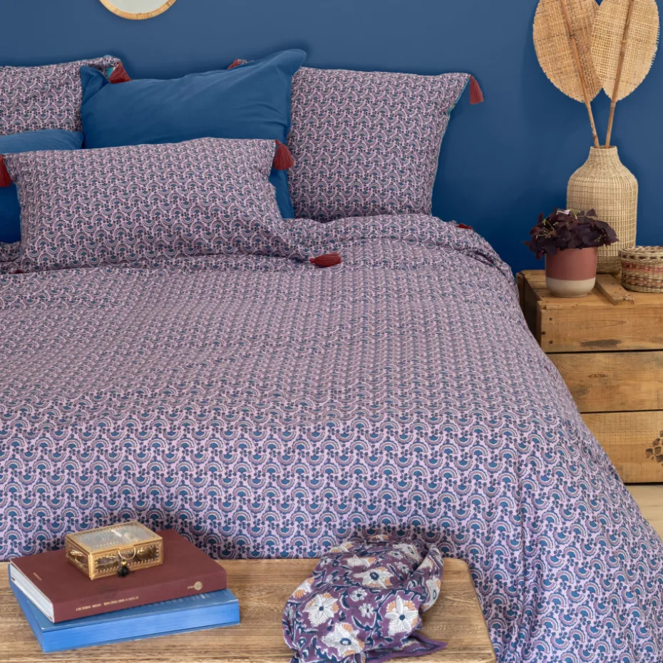 Laissez-vous transporter ailleurs avec la taie d’oreiller rectangulaire Bombay, une collection qui vous fait goûter aux couleurs de l’Inde. Réalisée à partir d’un mélange de lin et de coton, elle revêt un double décor qui offre des fleurs colorées aux effets picturaux d’un côté et un micro-imprimé géométrique de l’autre. La petite touche en plus ? Ses pompons violets qui habillent la taie d’oreiller !