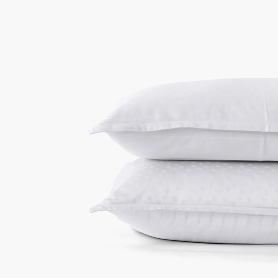 Fashion Taie d’oreiller rectangulaire satin de coton jacquard pois et rayures Prestige blanc Taies D’oreiller