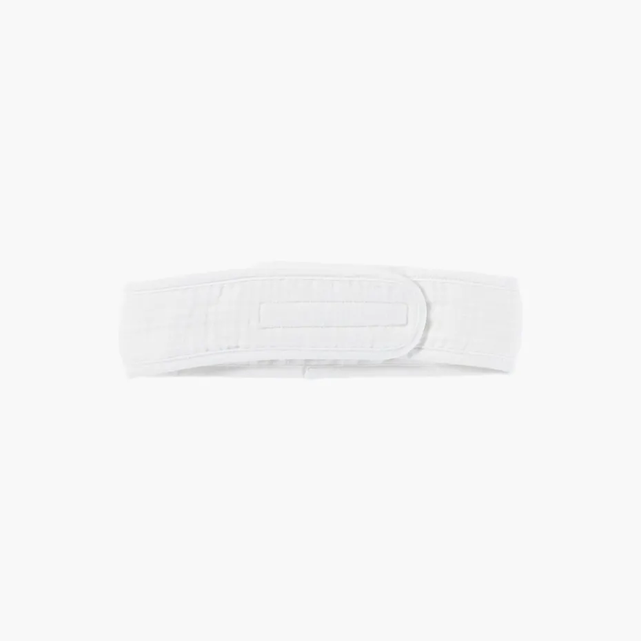 Ce bandeau en coton et gaze de coton bio permet de dégager le visage durant les soins.