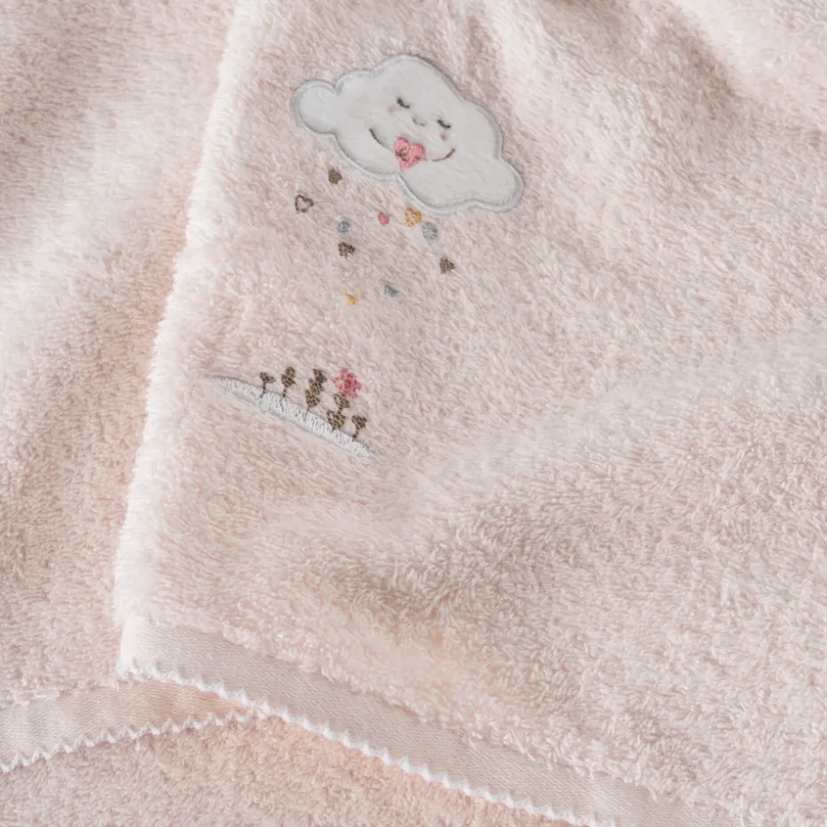 Craquez pour le drap de bain Bienvenue, un essentiel en coton biologique certifié GOTS. Orné de motifs brodés représentant le jour, la nuit, la pluie et le beau temps. Une pièce qui allie grande douceur et élégance.