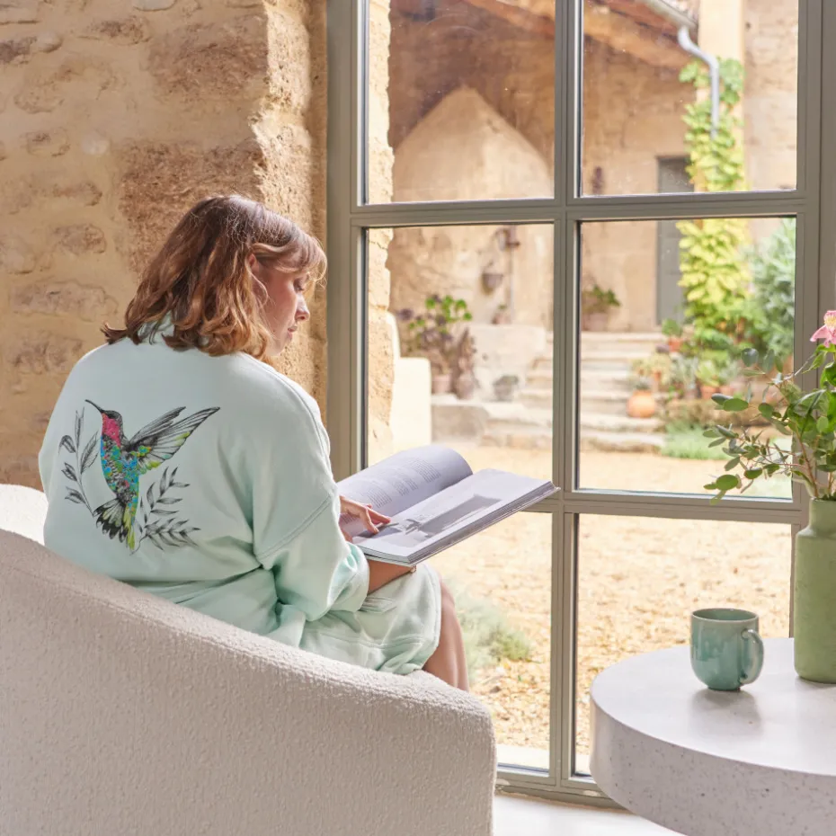 Enveloppez-vous de douceur avec le peignoir femme Calypte, parfait pour les moments de détente à la maison ou au bord de la mer. Son motif inspiré du linge de lit crée une ambiance cosy et raffinée.