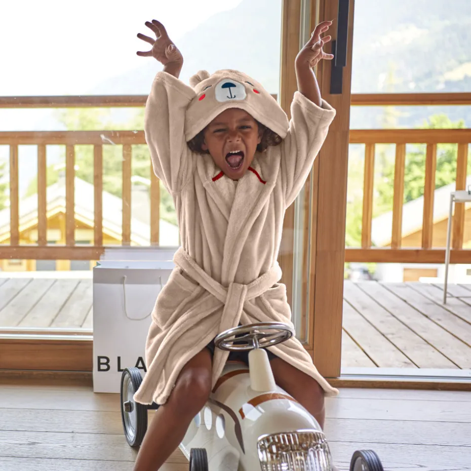 Fabriquée en matière polaire, la robe de chambre Bearful invite les plus jeunes au cocooning, offrant douceur et chaleur de par sa composition. Cette robe de chambre dispose d’une capuche, permettant de sécher la tête des enfants tout en s’amusant. Laissez-vous séduire par son adorable broderie, ses éléments en 3D et son coloris lin. Une jolie idée cadeau pour faire plaisir !