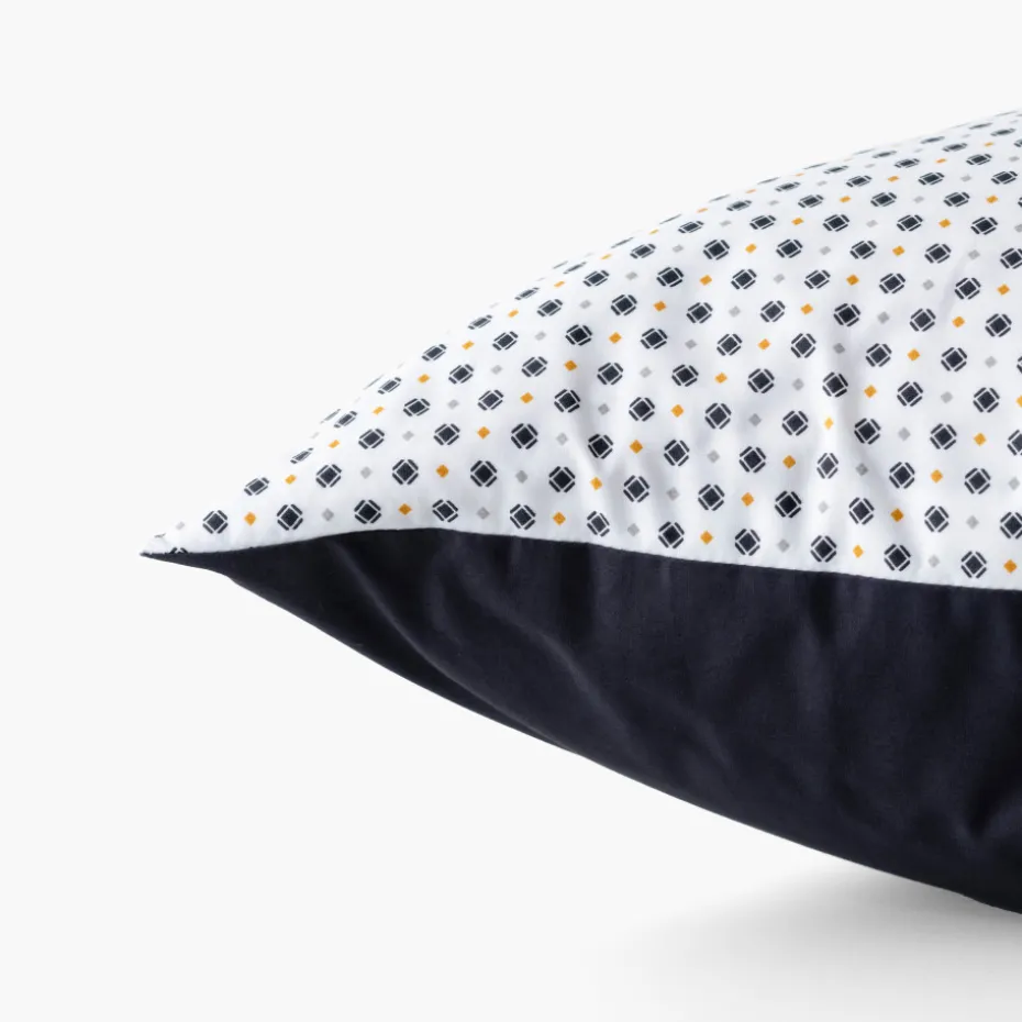 Cette taie d’oreiller réversible vous propose une face imprimée et une face unie.