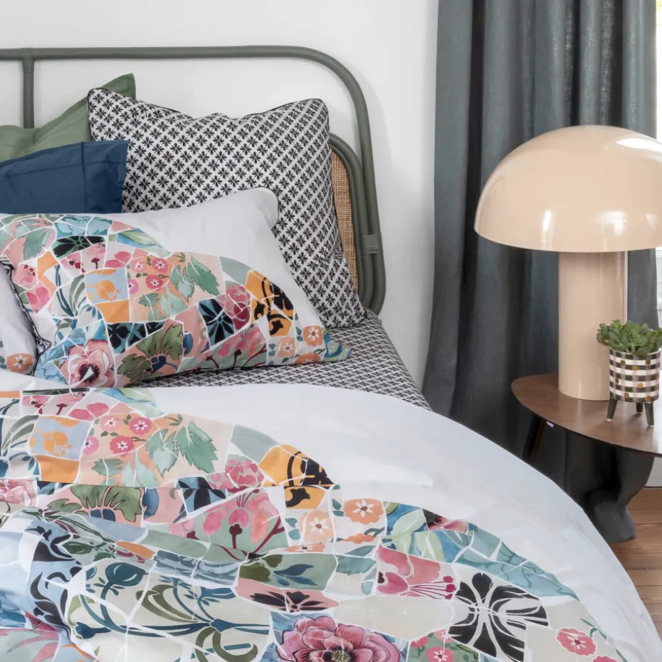 Partez à la découverte de l’architecture barcelonaise avec la taie d’oreiller Azulejos ! Hommage aux réalisations d’Antoni Gaudí, architecte et créateur de génie, cette collection en percale de coton se distingue par son impressionnante composition aquarellée aux effets de mosaïques en 3D. Laissez-vous séduire par cette taie d’oreiller réversible qui mêle maxi et micro-motifs pour un jeu de contrastes saisissant.
