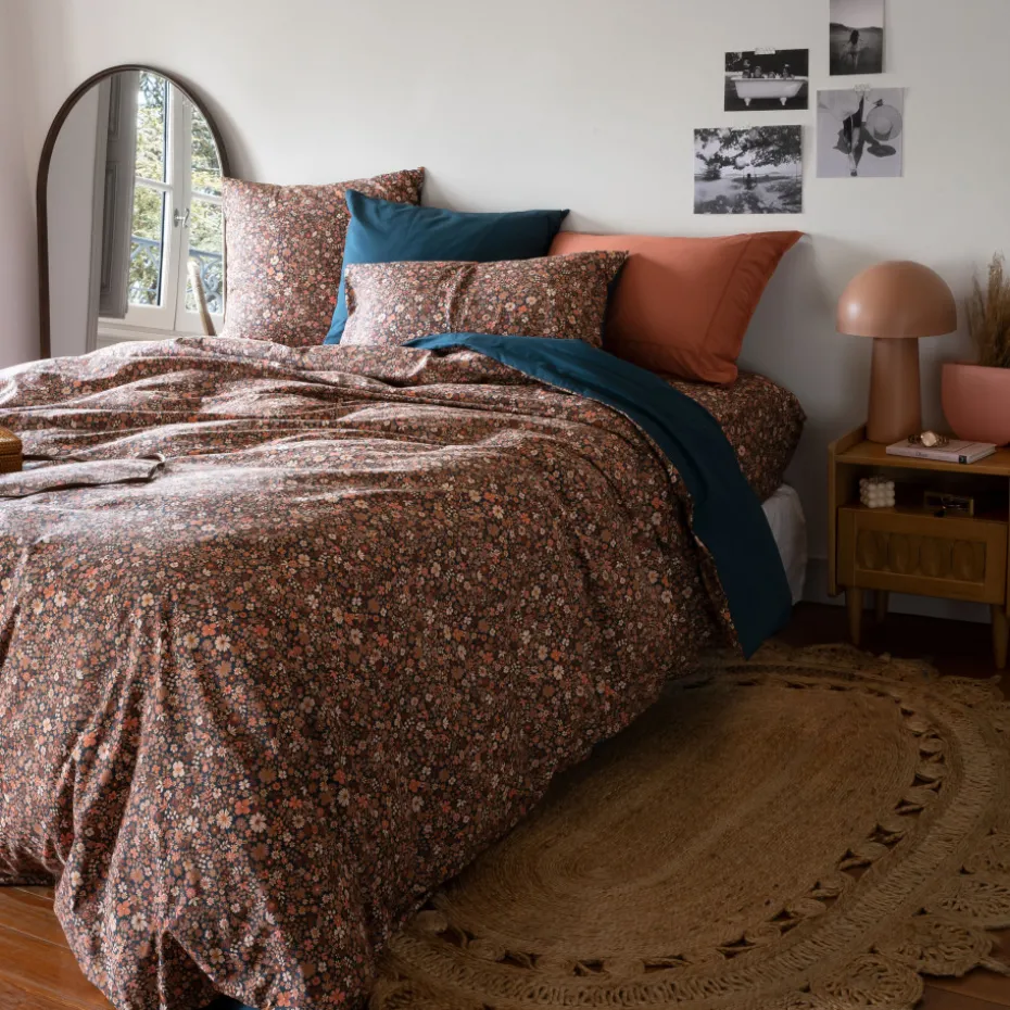 Succombez à l’esprit liberty de notre collection Neo et son coloris bleu prusse floral. Le confort de la percale de coton associé à de petits imprimés pour une chambre tendance.