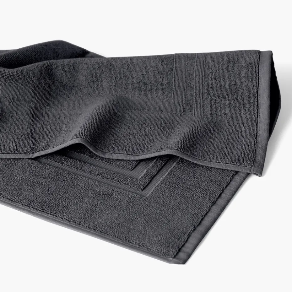 Le tapis de bain Lola trouve sa place devant la douche, ou à côté de la baignoire. Proposé au format rectangulaire ou carré, il fait partie de la parure de bain Lola, un linge de bain permanent indémodable.