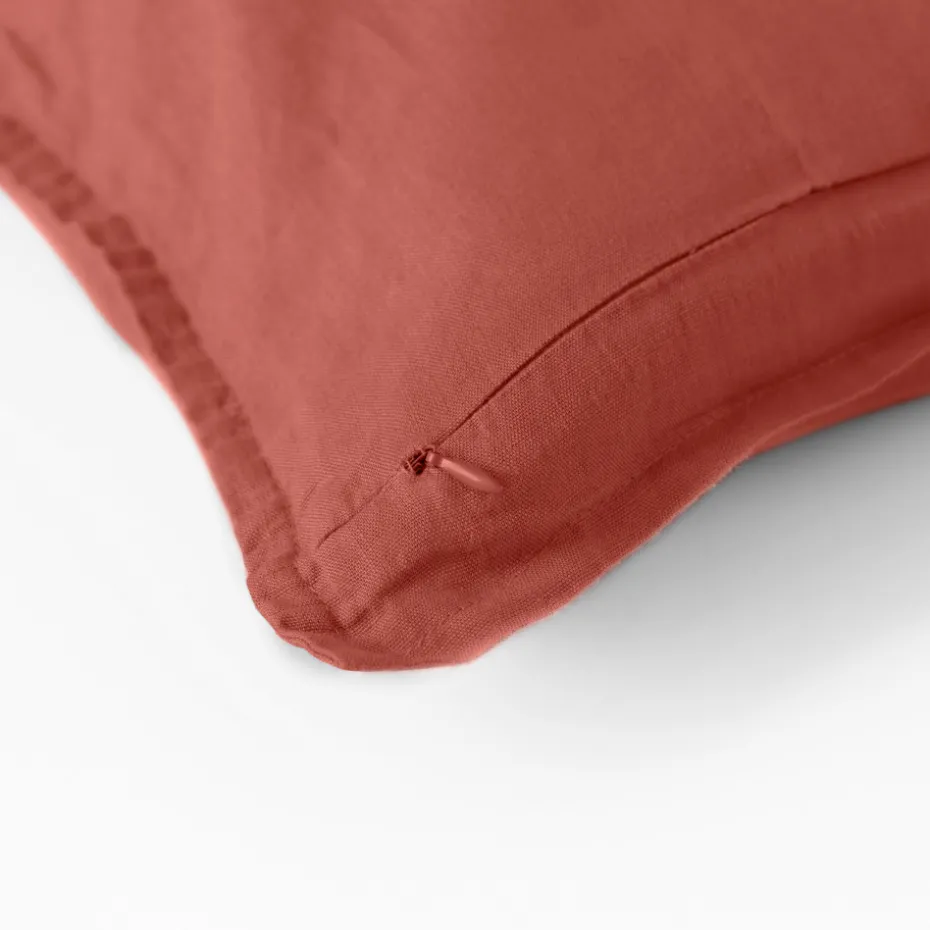 Une confection 100% pur lin lavé donne à cette housse de coussin un toucher exceptionnel.
