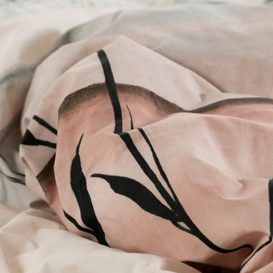 Cette fresque de lit aquarellée séduit par son grand motif placé aux teintes pastel.