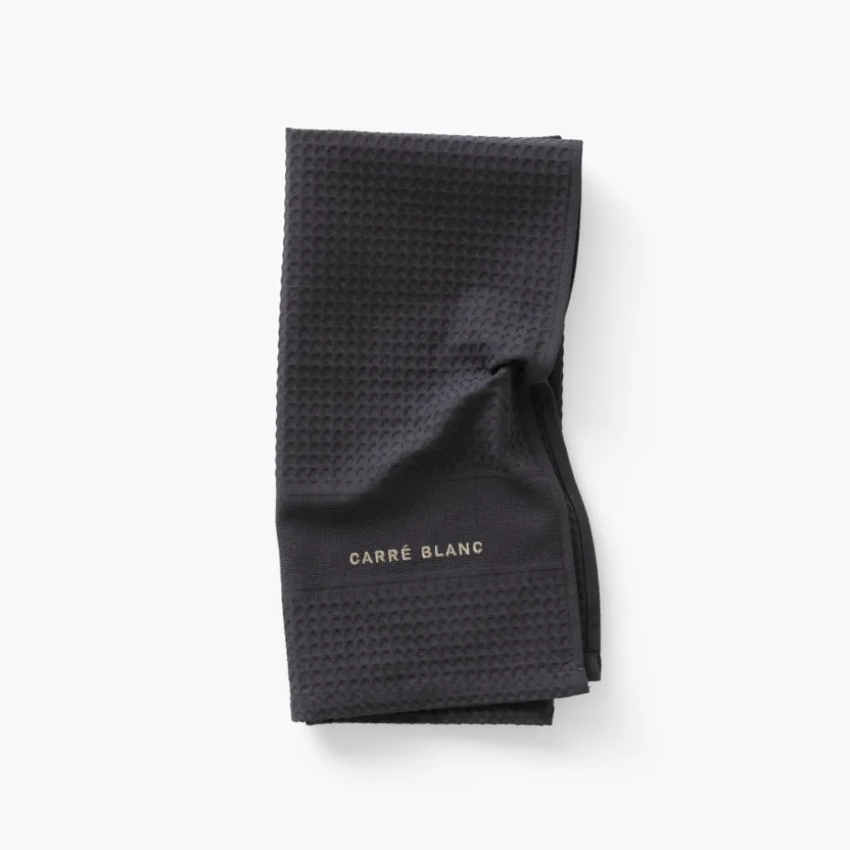 ● Torchon Signature en nid d’abeille 50 x 70 cm, couleur charbon et couleur grège