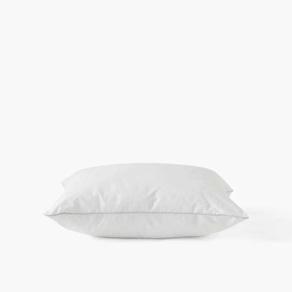 Un garnissage synthétique haut de gamme 100% microfibre Dacron Suprelle pour un oreiller ferme destiné aux personnes qui dorment sur le côté. L’oreiller Suprême ferme possède une enveloppe 100 % coton siglée Carré Blanc et une finition passepoil gris.