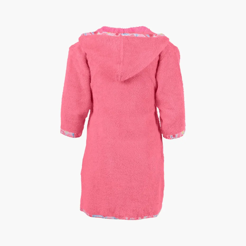 Un peignoir de bain très girly avec sa coupe cache-coeur et ses particularités imprimées.
