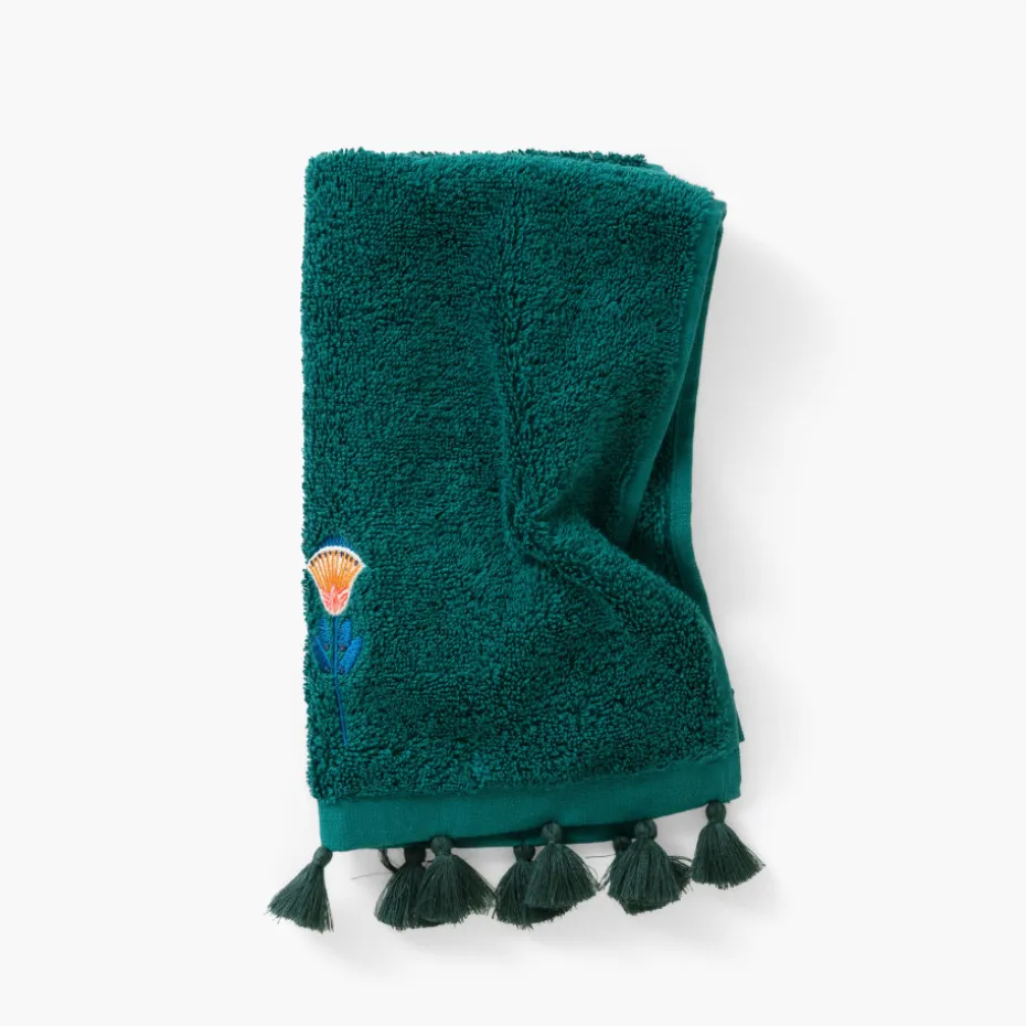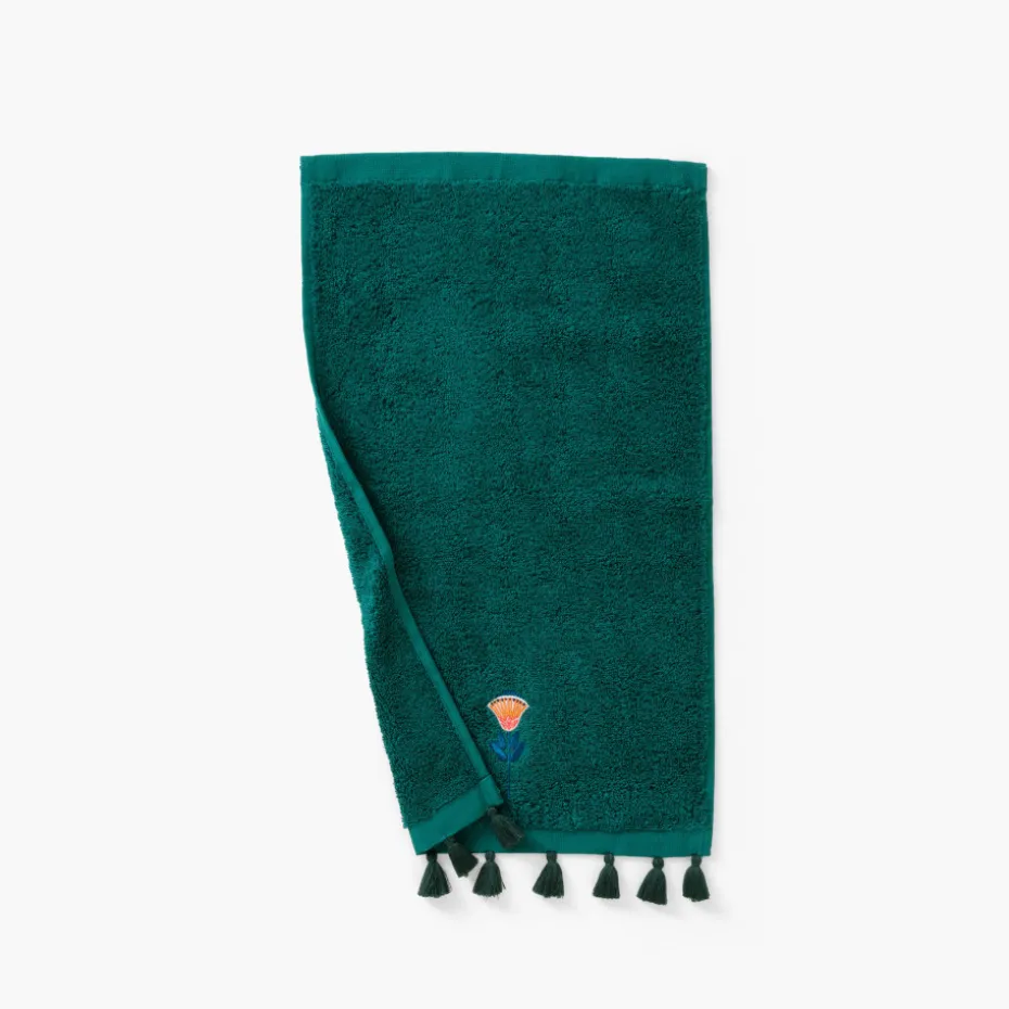 Fascinées par les trésors de l’Egypte antique, nos stylistes ont imaginé cette serviette invité aux sublimes broderies de papyrus. Laissez-vous charmer par ses finitions élégantes aux multiples pompons.