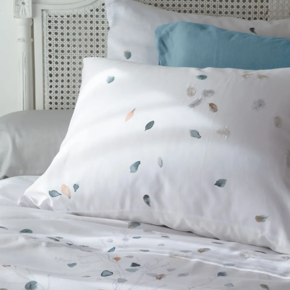 Confectionnée en satin de coton, la taie d’oreiller Equinoxe sublime la chambre à coucher avec ses tonalités givrées et ses motifs scintillants. Une collection précieuse pour les intérieurs élégants.