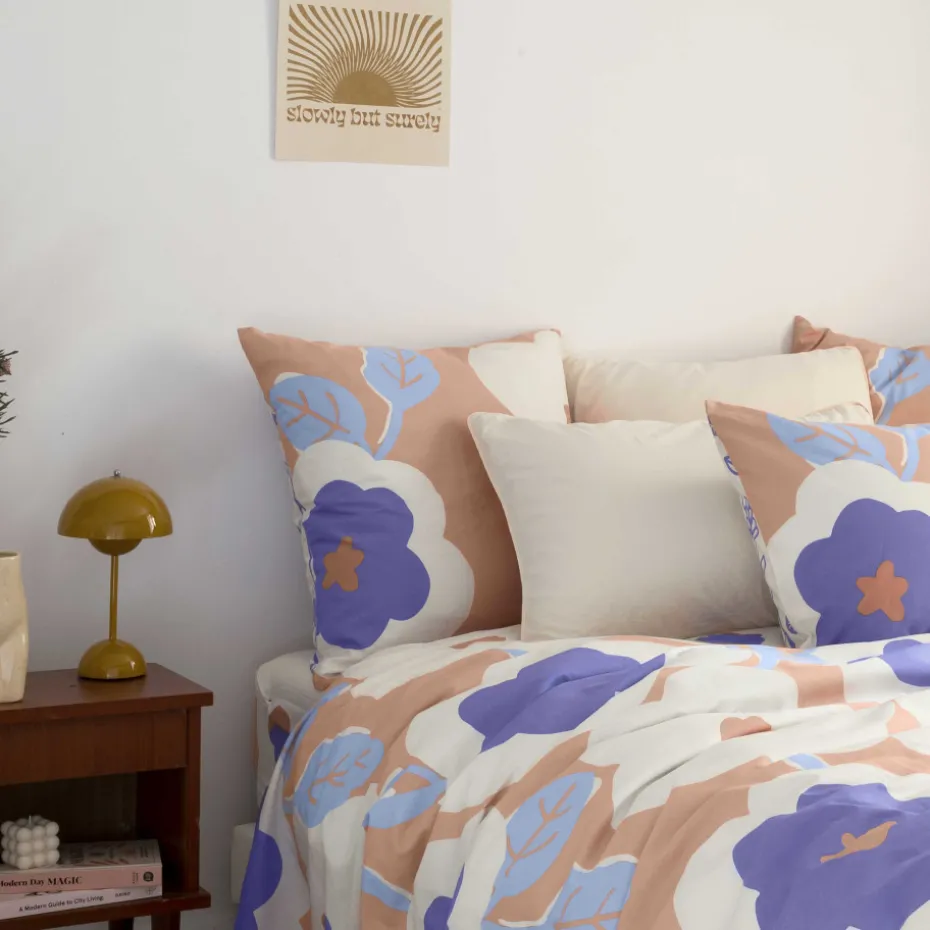 Les adeptes de la décoration rétro vont adorer la taie d’oreiller Twiggypop ! Inspirée par le célèbre mannequin Twiggy, cette collection revisite le style sixties avec un double décor aux allures vintage. D’un côté, des maxi fleurs stylisées. De l’autre, un imprimé floral plus discret pour varier les plaisirs. Laissez-vous séduire par ce linge de maison aux couleurs pastel douces.