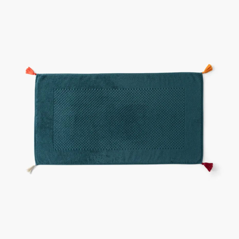 Adoptez le tapis de bain Eclats en 100% coton, parfait pour absorber l’eau après votre bain. Ses pompons colorés ajoutent une touche de fantaisie à votre salle de bain.