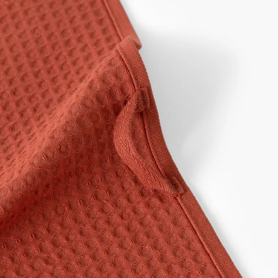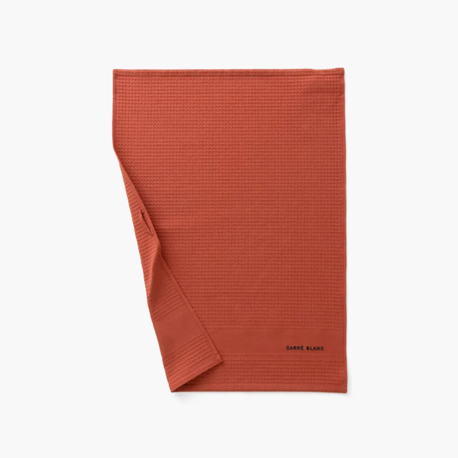 Adoptez le torchon en nid d’abeille Signature. En pur coton pour un toucher doux et une parfaite absorption. Il est disponible en 3 coloris : grège, charbon et terre cuite.
