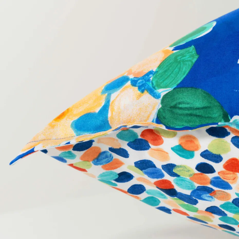 Cette taie d'oreiller aux multiples couleurs se distingue par ses effets picturaux.